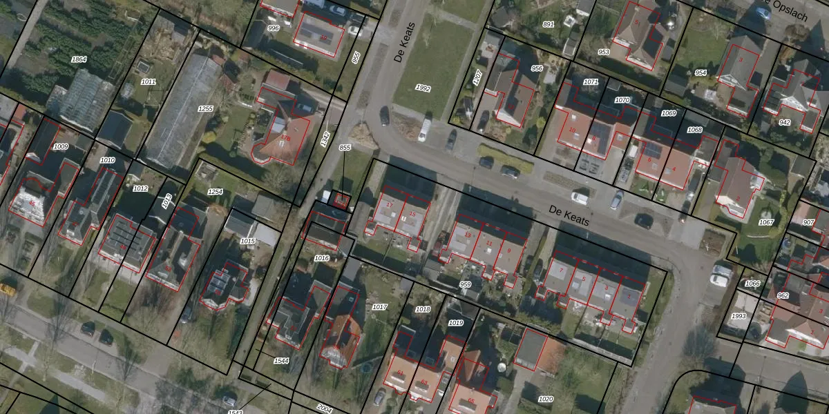 Het perceel waarop De Keats 15 staat heeft een oppervlakte van 1840 m². Dit is een zeer groot perceel. De perceeloppervlakte wordt geregistreerd door het Kadaster. Gedetailleerde informatie over de maten van dit perceel kunt u vinden in het rapport Kadastrale kaart met maatvoering van De Keats 15.