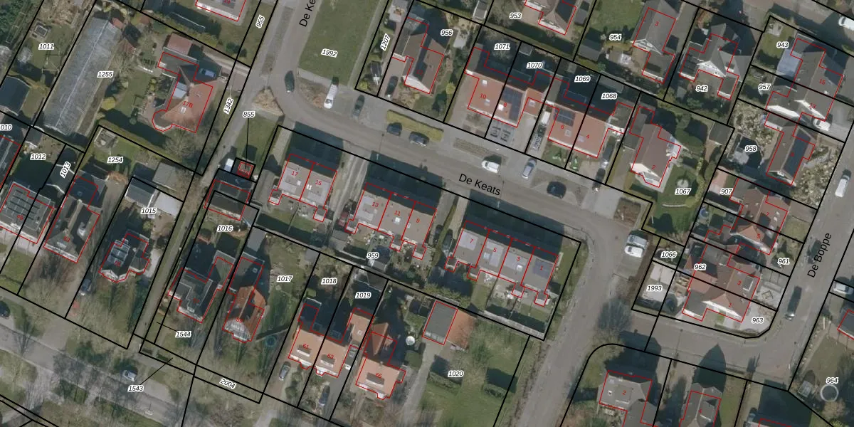 Het perceel waarop De Keats 9 staat heeft een oppervlakte van 1840 m². Dit is een zeer groot perceel. De perceeloppervlakte wordt geregistreerd door het Kadaster. Gedetailleerde informatie over de maten van dit perceel kunt u vinden in het rapport Kadastrale kaart met maatvoering van De Keats 9.
