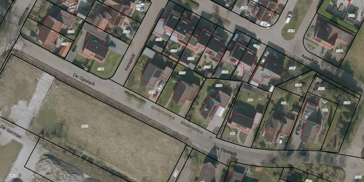 Het perceel waarop De Opslach 22 staat heeft een oppervlakte van 456 m². Dit is een groot perceel. De perceeloppervlakte wordt geregistreerd door het Kadaster. Gedetailleerde informatie over de maten van dit perceel kunt u vinden in het rapport Kadastrale kaart met maatvoering van De Opslach 22.