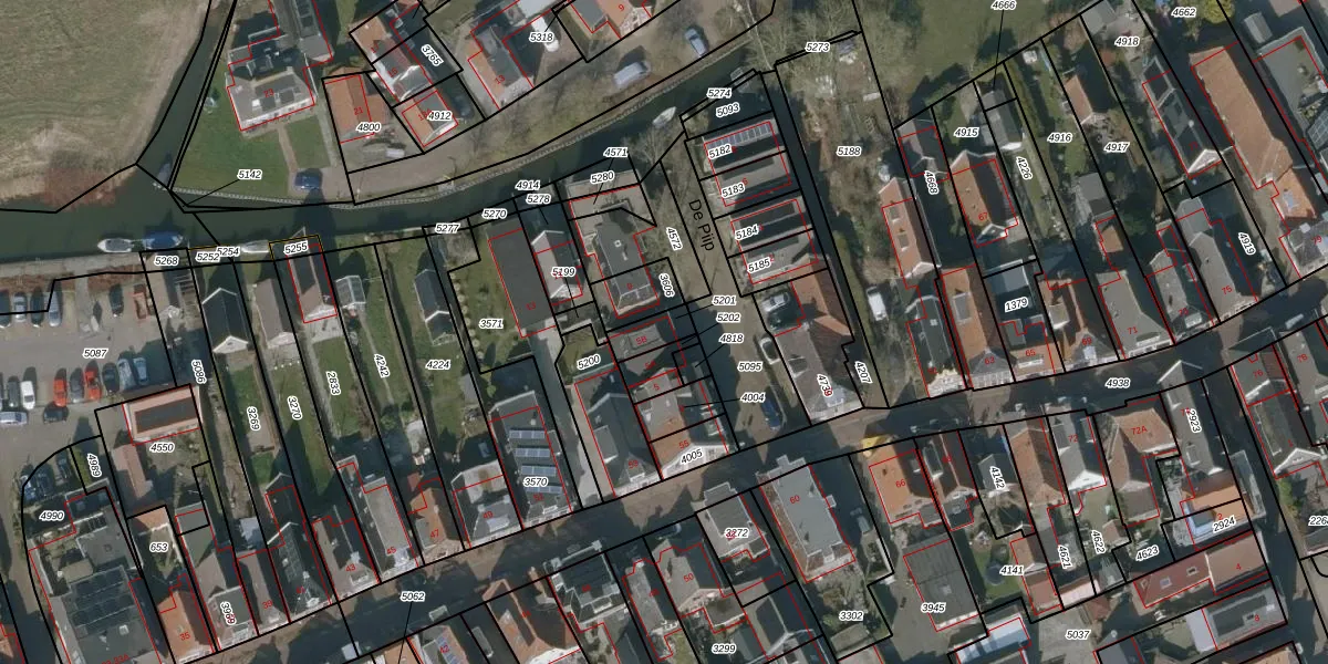 Het perceel waarop De Piip 5-B staat heeft een oppervlakte van 61 m². Dit is een klein perceel. De perceeloppervlakte wordt geregistreerd door het Kadaster. Gedetailleerde informatie over de maten van dit perceel kunt u vinden in het rapport Kadastrale kaart met maatvoering van De Piip 5-B.