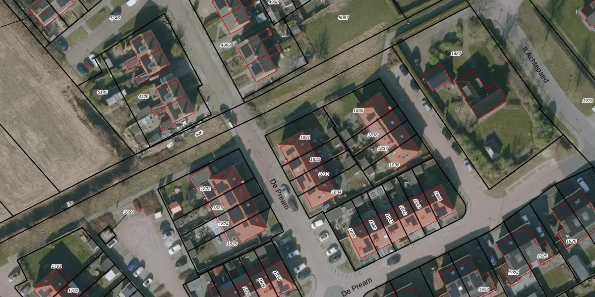 Het perceel waarop De Pream 28 staat heeft een oppervlakte van 252 m². Dit is een middelgroot perceel. De perceeloppervlakte wordt geregistreerd door het Kadaster. Gedetailleerde informatie over de maten van dit perceel kunt u vinden in het rapport Kadastrale kaart met maatvoering van De Pream 28.