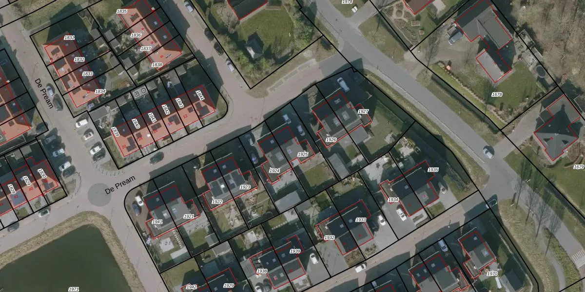 Het perceel waarop De Pream 5 staat heeft een oppervlakte van 349 m². Dit is een groot perceel. De perceeloppervlakte wordt geregistreerd door het Kadaster. Gedetailleerde informatie over de maten van dit perceel kunt u vinden in het rapport Kadastrale kaart met maatvoering van De Pream 5.