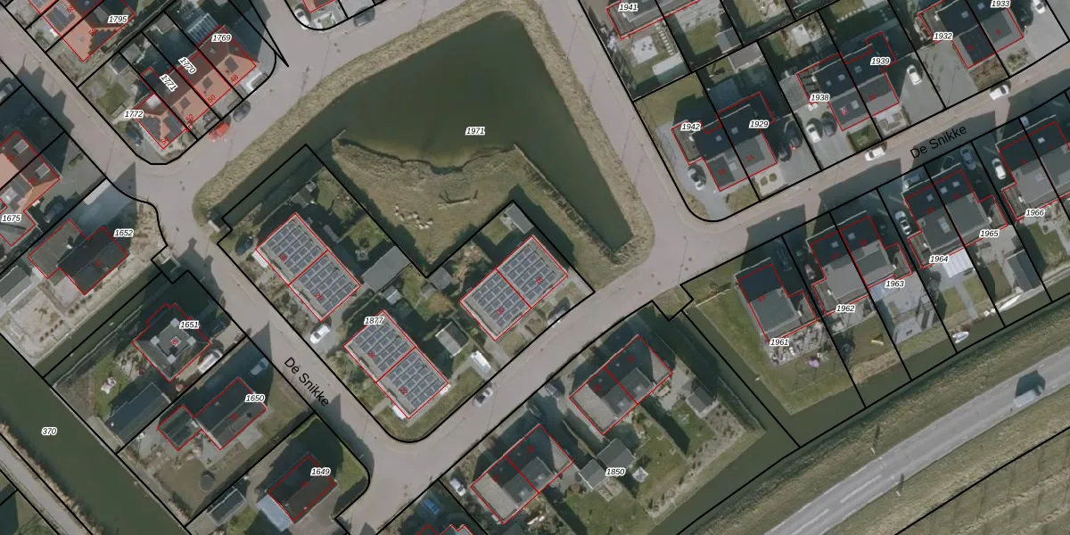 Het perceel waarop De Snikke 18 staat heeft een oppervlakte van 1850 m². Dit is een zeer groot perceel. De perceeloppervlakte wordt geregistreerd door het Kadaster. Gedetailleerde informatie over de maten van dit perceel kunt u vinden in het rapport Kadastrale kaart met maatvoering van De Snikke 18.