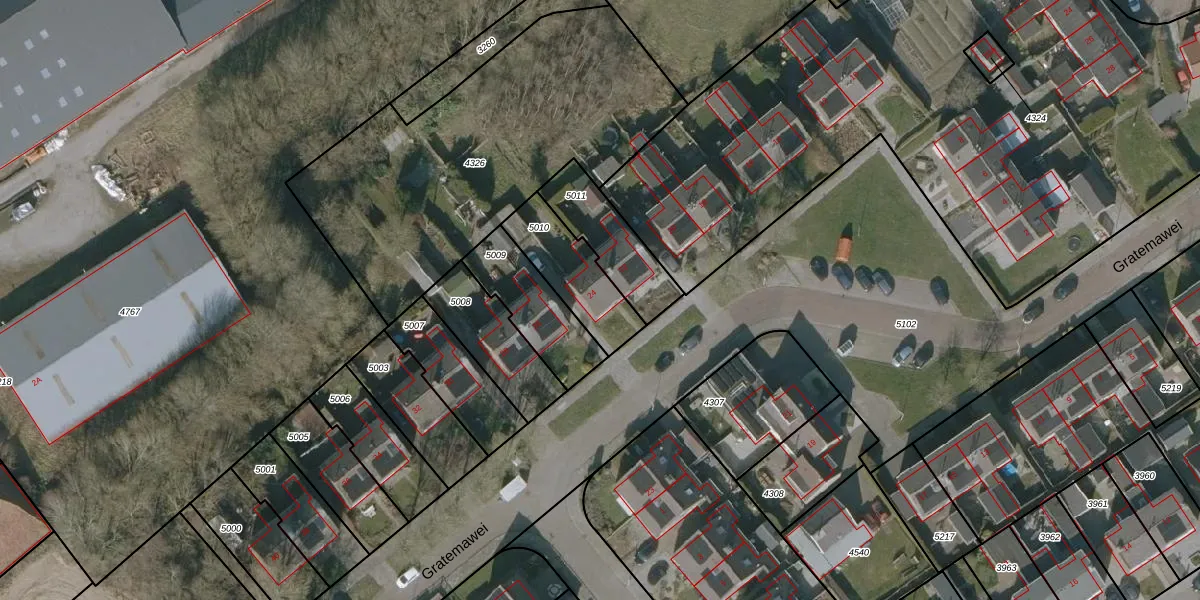 Het perceel waarop Gratemawei 24 staat heeft een oppervlakte van 242 m². Dit is een middelgroot perceel. De perceeloppervlakte wordt geregistreerd door het Kadaster. Gedetailleerde informatie over de maten van dit perceel kunt u vinden in het rapport Kadastrale kaart met maatvoering van Gratemawei 24.