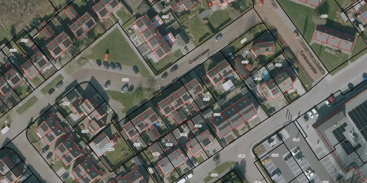 Het perceel waarop Gratemawei 7 staat heeft een oppervlakte van 1800 m². Dit is een zeer groot perceel. De perceeloppervlakte wordt geregistreerd door het Kadaster. Gedetailleerde informatie over de maten van dit perceel kunt u vinden in het rapport Kadastrale kaart met maatvoering van Gratemawei 7.