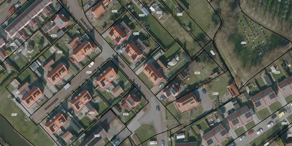 Molestrjitte 13 is gelegen op kadastraal perceel BLK00A4331. Deze kadastrale aanduiding is uniek en wordt gebruikt door het Kadaster om eigendomsrechten en andere zakelijke rechten vast te leggen. Het perceel maakt onderdeel uit van de kadastrale gemeente Berlikum.
