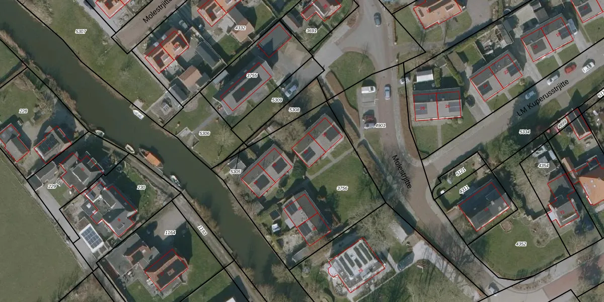 Molestrjitte 40 is gelegen op kadastraal perceel BLK00A3756. Deze kadastrale aanduiding is uniek en wordt gebruikt door het Kadaster om eigendomsrechten en andere zakelijke rechten vast te leggen. Het perceel maakt onderdeel uit van de kadastrale gemeente Berlikum.