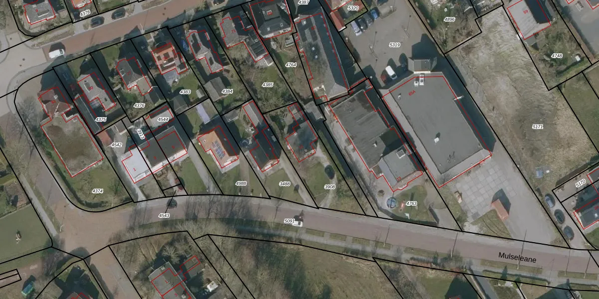 Het perceel waarop Mulseleane 11 staat heeft een oppervlakte van 500 m². Dit is een groot perceel. De perceeloppervlakte wordt geregistreerd door het Kadaster. Gedetailleerde informatie over de maten van dit perceel kunt u vinden in het rapport Kadastrale kaart met maatvoering van Mulseleane 11.