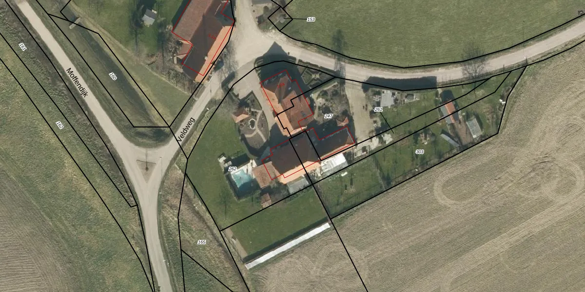 Het perceel waarop Veldweg 2-a staat heeft een oppervlakte van 1600 m². Dit is een zeer groot perceel. De perceeloppervlakte wordt geregistreerd door het Kadaster. Gedetailleerde informatie over de maten van dit perceel kunt u vinden in het rapport Kadastrale kaart met maatvoering van Veldweg 2-a.
