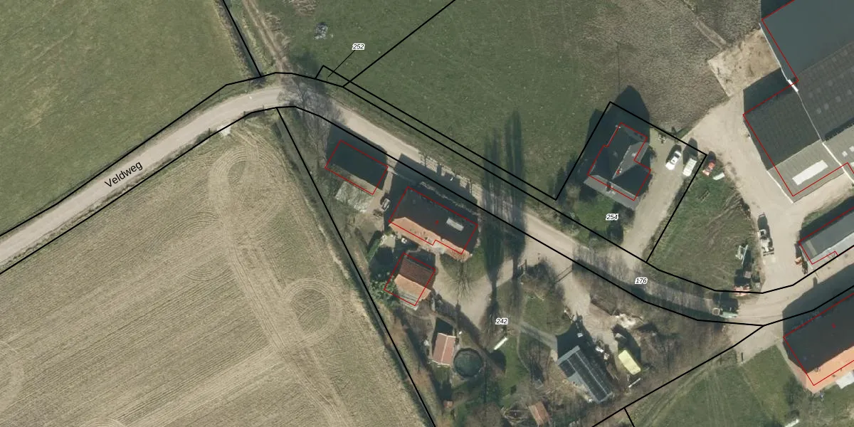 Veldweg 4 is gelegen op kadastraal perceel KWK02L242. Deze kadastrale aanduiding is uniek en wordt gebruikt door het Kadaster om eigendomsrechten en andere zakelijke rechten vast te leggen. Het perceel maakt onderdeel uit van de kadastrale gemeente Kerkwijk.