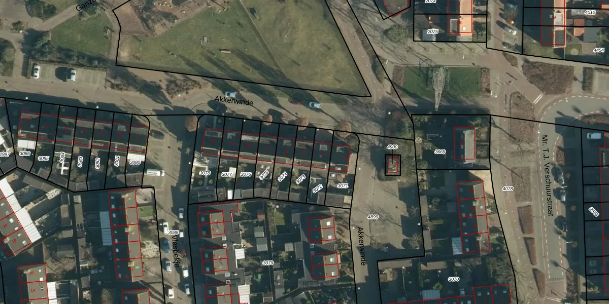 Gebruik de zoekbalk of klik op een perceel voor informatie over de adressen binnen dit perceel.