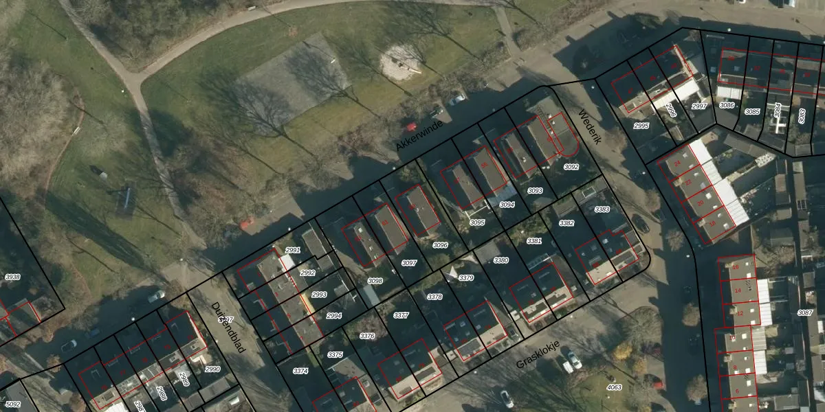 Gebruik de zoekbalk of klik op een perceel voor informatie over de adressen binnen dit perceel.