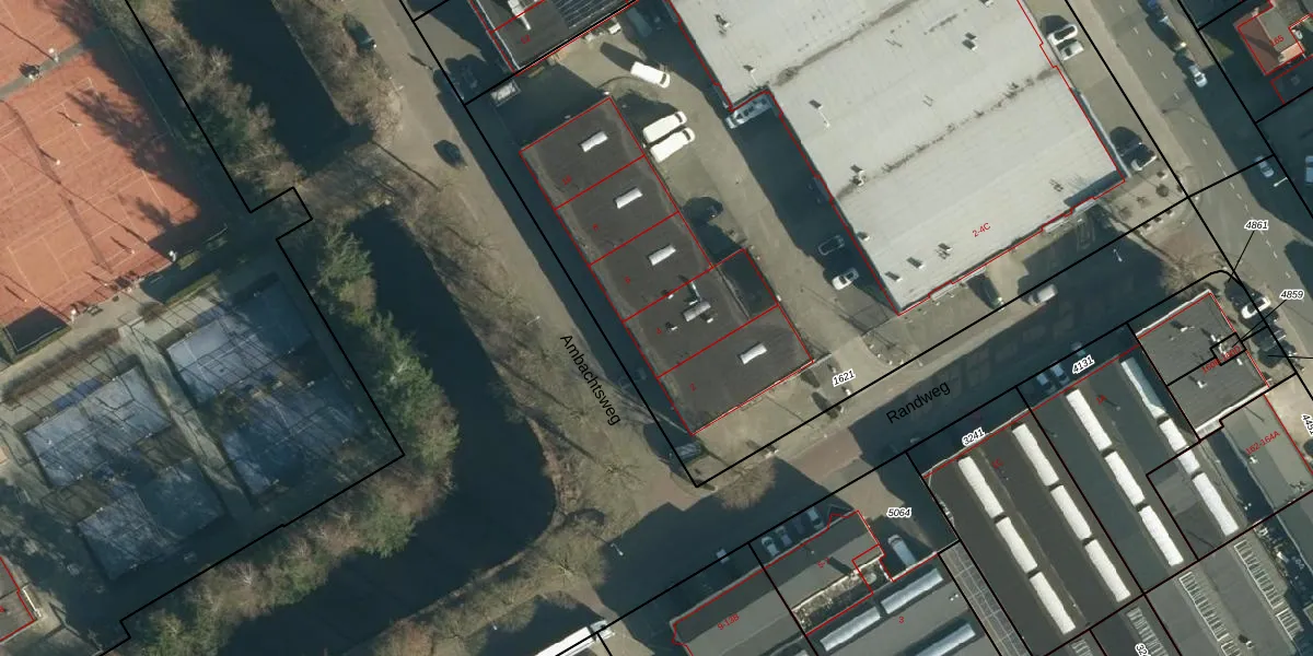 Het perceel waarop Ambachtsweg 4 staat heeft een oppervlakte van 5957 m². Dit is een zeer groot perceel. De perceeloppervlakte wordt geregistreerd door het Kadaster. Gedetailleerde informatie over de maten van dit perceel kunt u vinden in het rapport Kadastrale kaart met maatvoering van Ambachtsweg 4.