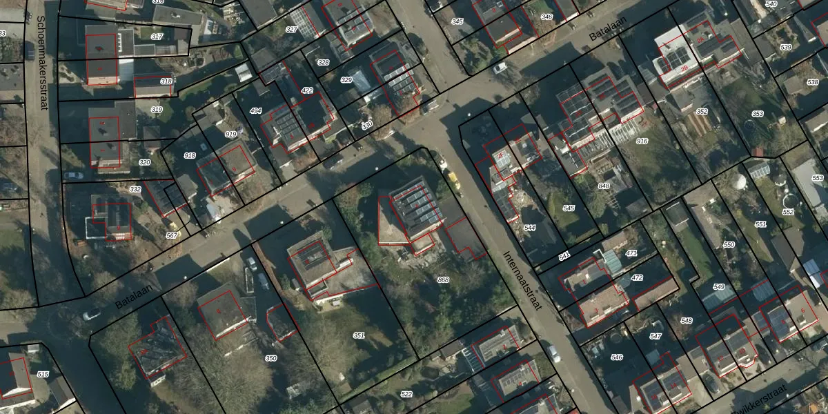 Gebruik de zoekbalk of klik op een perceel voor informatie over de adressen binnen dit perceel.