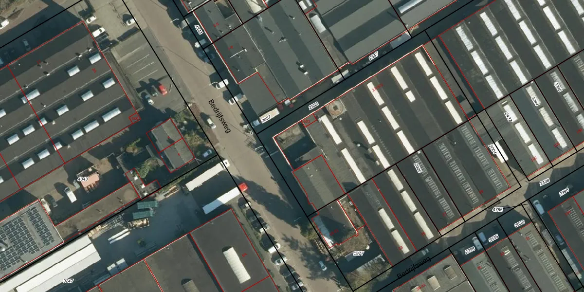 Het perceel waarop Bedrijfsweg 15 staat heeft een oppervlakte van 2317 m². Dit is een zeer groot perceel. De perceeloppervlakte wordt geregistreerd door het Kadaster. Gedetailleerde informatie over de maten van dit perceel kunt u vinden in het rapport Kadastrale kaart met maatvoering van Bedrijfsweg 15.