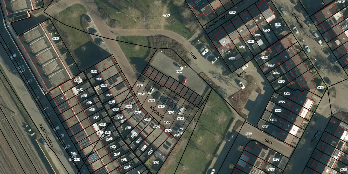 Het perceel waarop Berk 12 staat heeft een oppervlakte van 20 m². Dit is een klein perceel. De perceeloppervlakte wordt geregistreerd door het Kadaster. Gedetailleerde informatie over de maten van dit perceel kunt u vinden in het rapport Kadastrale kaart met maatvoering van Berk 12.