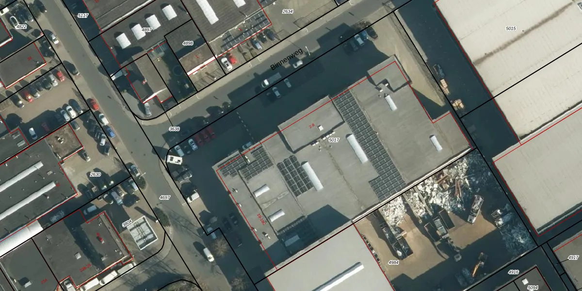 Het perceel waarop Binnenweg 2 staat heeft een oppervlakte van 5120 m². Dit is een zeer groot perceel. De perceeloppervlakte wordt geregistreerd door het Kadaster. Gedetailleerde informatie over de maten van dit perceel kunt u vinden in het rapport Kadastrale kaart met maatvoering van Binnenweg 2.