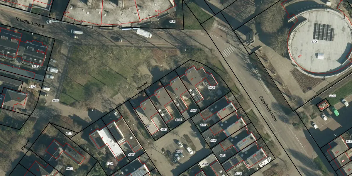 Gebruik de zoekbalk of klik op een perceel voor informatie over de adressen binnen dit perceel.