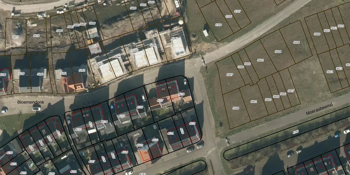 Gebruik de zoekbalk of klik op een perceel voor informatie over de adressen binnen dit perceel.