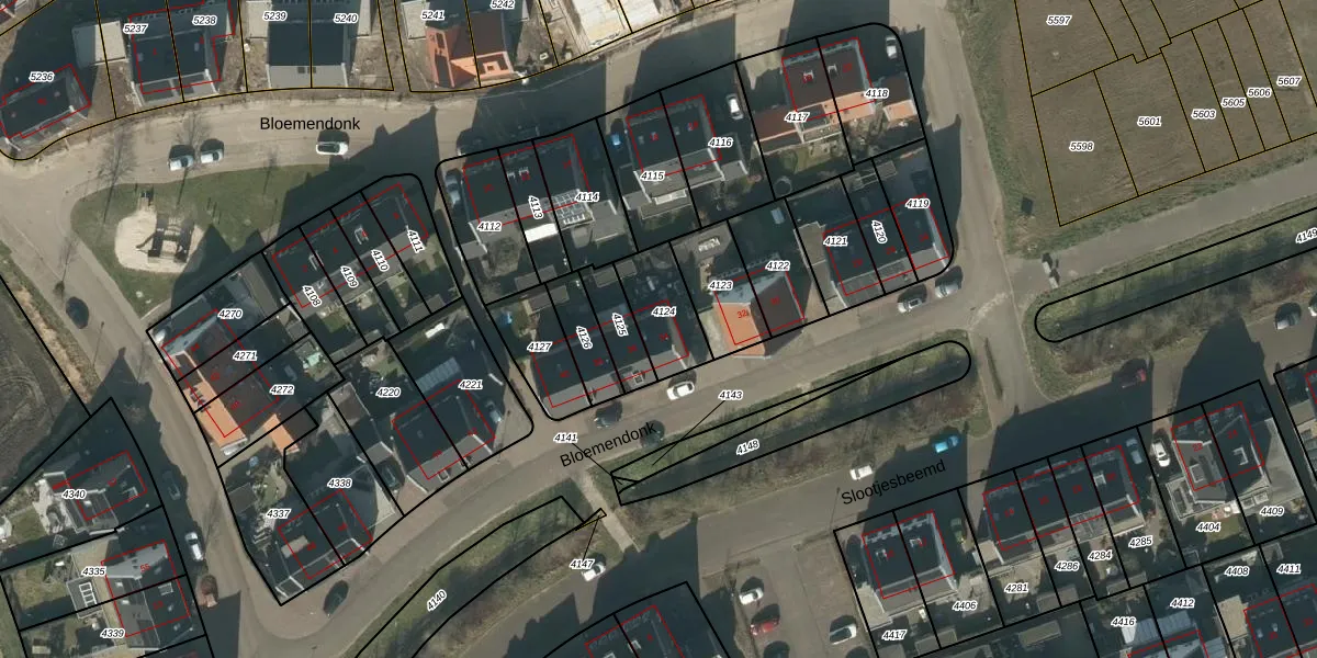 Het perceel waarop Bloemendonk 34 staat heeft een oppervlakte van 175 m². Dit is een middelgroot perceel. De perceeloppervlakte wordt geregistreerd door het Kadaster. Gedetailleerde informatie over de maten van dit perceel kunt u vinden in het rapport Kadastrale kaart met maatvoering van Bloemendonk 34.