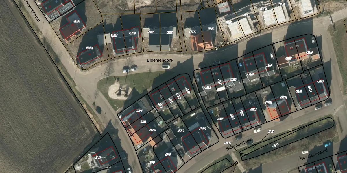 Gebruik de zoekbalk of klik op een perceel voor informatie over de adressen binnen dit perceel.