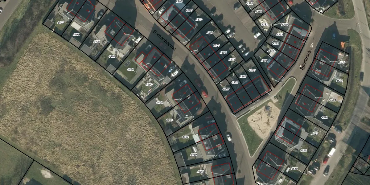 Bomenbeemd 13 is gelegen op kadastraal perceel BES00K4495. Deze kadastrale aanduiding is uniek en wordt gebruikt door het Kadaster om eigendomsrechten en andere zakelijke rechten vast te leggen. Het perceel maakt onderdeel uit van de kadastrale gemeente Best.
