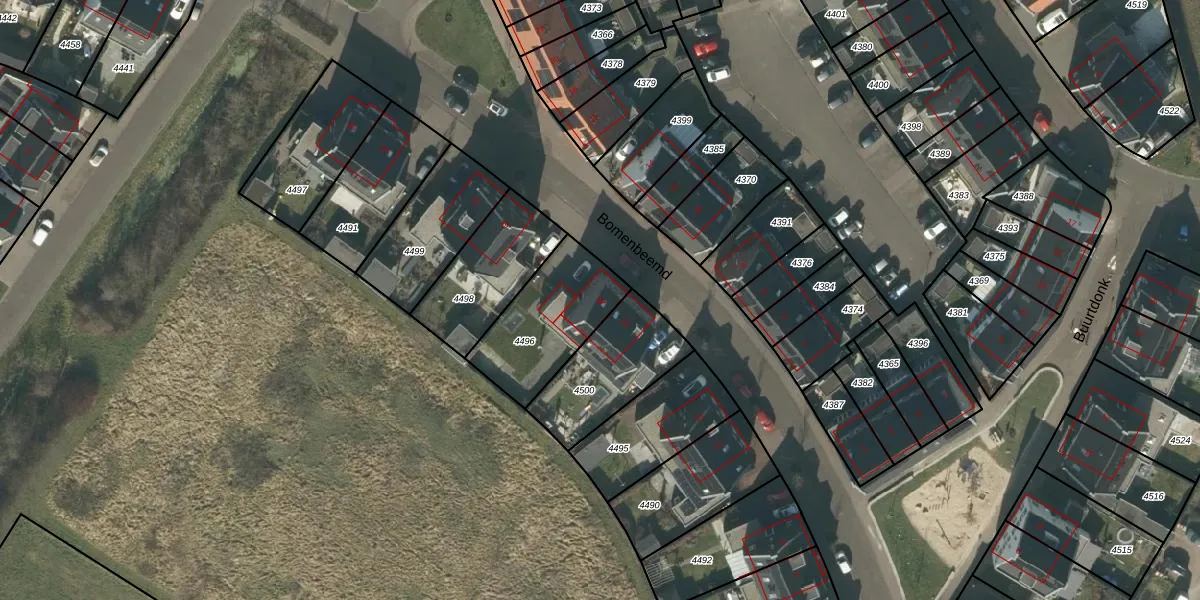 Gebruik de zoekbalk of klik op een perceel voor informatie over de adressen binnen dit perceel.