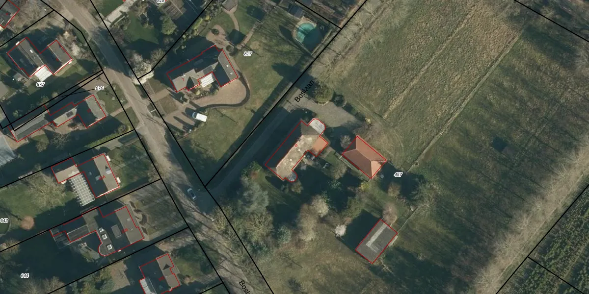 Boslaan 9 is gelegen op kadastraal perceel BES00L457. Deze kadastrale aanduiding is uniek en wordt gebruikt door het Kadaster om eigendomsrechten en andere zakelijke rechten vast te leggen. Het perceel maakt onderdeel uit van de kadastrale gemeente Best.