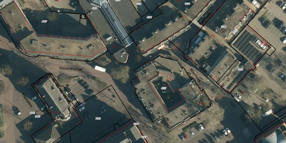 Het perceel waarop Boterhoek 103 staat heeft een oppervlakte van 1735 m². Dit is een zeer groot perceel. De perceeloppervlakte wordt geregistreerd door het Kadaster. Gedetailleerde informatie over de maten van dit perceel kunt u vinden in het rapport Kadastrale kaart met maatvoering van Boterhoek 103.