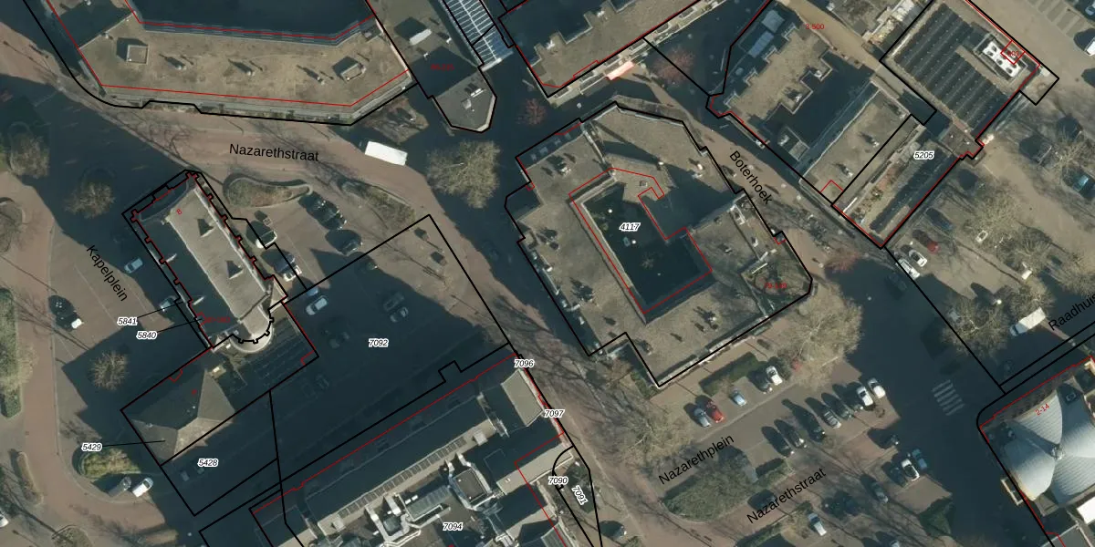 Het perceel waarop Boterhoek 107 staat heeft een oppervlakte van 1735 m². Dit is een zeer groot perceel. De perceeloppervlakte wordt geregistreerd door het Kadaster. Gedetailleerde informatie over de maten van dit perceel kunt u vinden in het rapport Kadastrale kaart met maatvoering van Boterhoek 107.