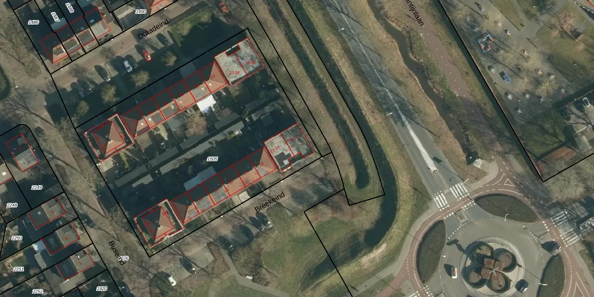 Het perceel waarop Breekeind 27 staat heeft een oppervlakte van 3365 m². Dit is een zeer groot perceel. De perceeloppervlakte wordt geregistreerd door het Kadaster. Gedetailleerde informatie over de maten van dit perceel kunt u vinden in het rapport Kadastrale kaart met maatvoering van Breekeind 27.