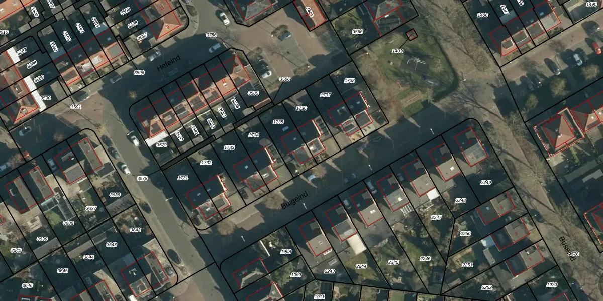 Buigeind 9 is gelegen op kadastraal perceel BES00K1735. Deze kadastrale aanduiding is uniek en wordt gebruikt door het Kadaster om eigendomsrechten en andere zakelijke rechten vast te leggen. Het perceel maakt onderdeel uit van de kadastrale gemeente Best.