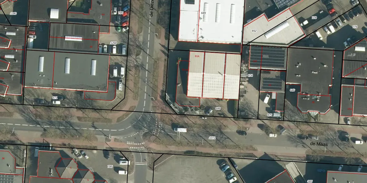 Het perceel waarop de Dieze 63 staat heeft een oppervlakte van 1375 m². Dit is een zeer groot perceel. De perceeloppervlakte wordt geregistreerd door het Kadaster. Gedetailleerde informatie over de maten van dit perceel kunt u vinden in het rapport Kadastrale kaart met maatvoering van de Dieze 63.