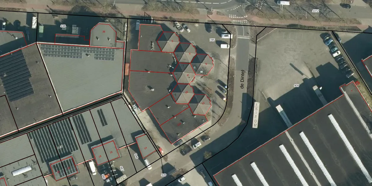 Het perceel waarop de Dintel 10 staat heeft een oppervlakte van 3300 m². Dit is een zeer groot perceel. De perceeloppervlakte wordt geregistreerd door het Kadaster. Gedetailleerde informatie over de maten van dit perceel kunt u vinden in het rapport Kadastrale kaart met maatvoering van de Dintel 10.