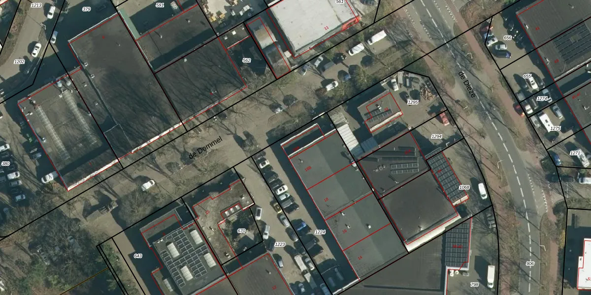 Het perceel waarop de Dommel 18-A staat heeft een oppervlakte van 1630 m². Dit is een zeer groot perceel. De perceeloppervlakte wordt geregistreerd door het Kadaster. Gedetailleerde informatie over de maten van dit perceel kunt u vinden in het rapport Kadastrale kaart met maatvoering van de Dommel 18-A.