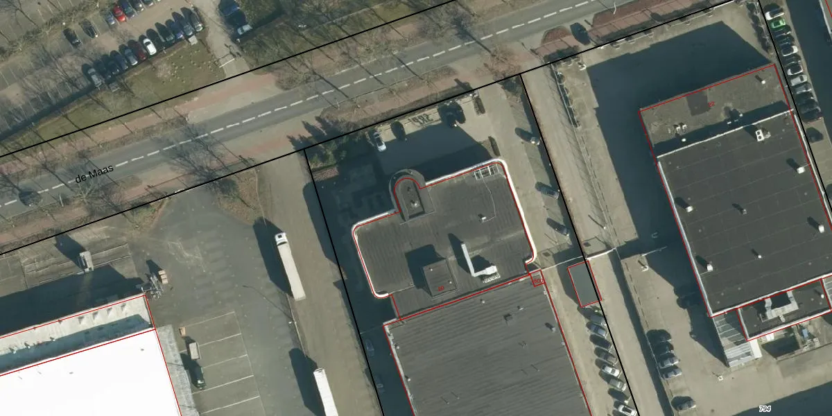 Het perceel waarop de Maas 20 staat heeft een oppervlakte van 1,2 ha. Dit is een zeer groot perceel. De perceeloppervlakte wordt geregistreerd door het Kadaster. Gedetailleerde informatie over de maten van dit perceel kunt u vinden in het rapport Kadastrale kaart met maatvoering van de Maas 20.