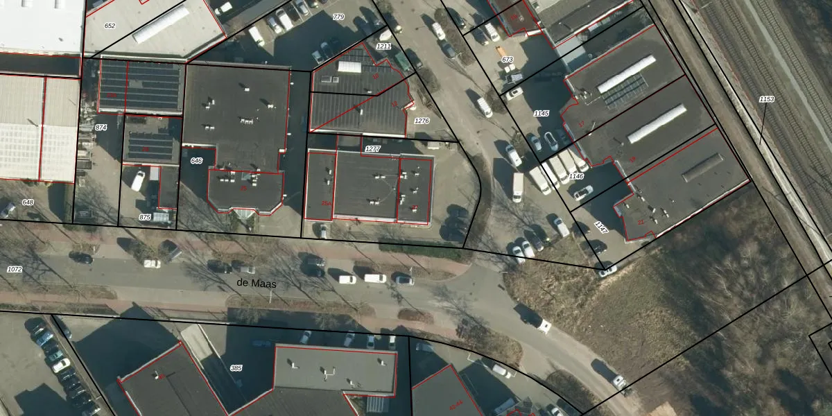 Het perceel waarop de Maas 27 staat heeft een oppervlakte van 1031 m². Dit is een zeer groot perceel. De perceeloppervlakte wordt geregistreerd door het Kadaster. Gedetailleerde informatie over de maten van dit perceel kunt u vinden in het rapport Kadastrale kaart met maatvoering van de Maas 27.