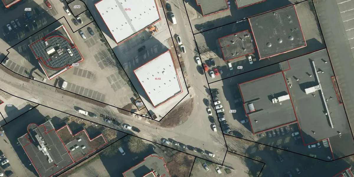 Het perceel waarop de Waal 41 staat heeft een oppervlakte van 5086 m². Dit is een zeer groot perceel. De perceeloppervlakte wordt geregistreerd door het Kadaster. Gedetailleerde informatie over de maten van dit perceel kunt u vinden in het rapport Kadastrale kaart met maatvoering van de Waal 41.