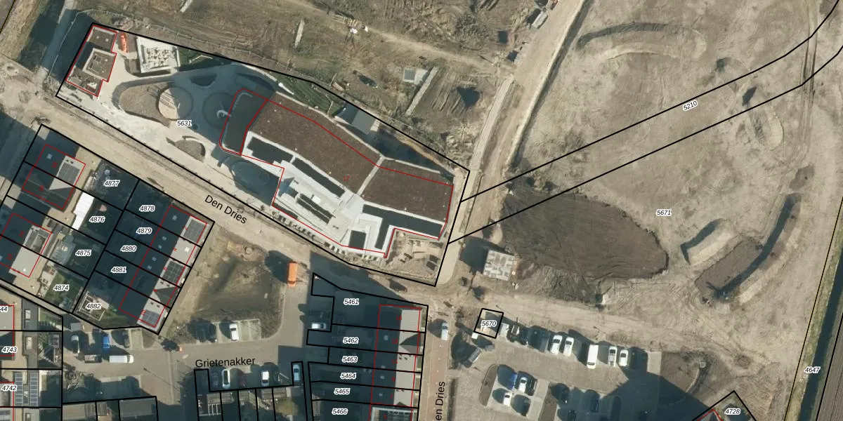 Het perceel waarop Den Dries 17 staat heeft een oppervlakte van 2852 m². Dit is een zeer groot perceel. De perceeloppervlakte wordt geregistreerd door het Kadaster. Gedetailleerde informatie over de maten van dit perceel kunt u vinden in het rapport Kadastrale kaart met maatvoering van Den Dries 17.