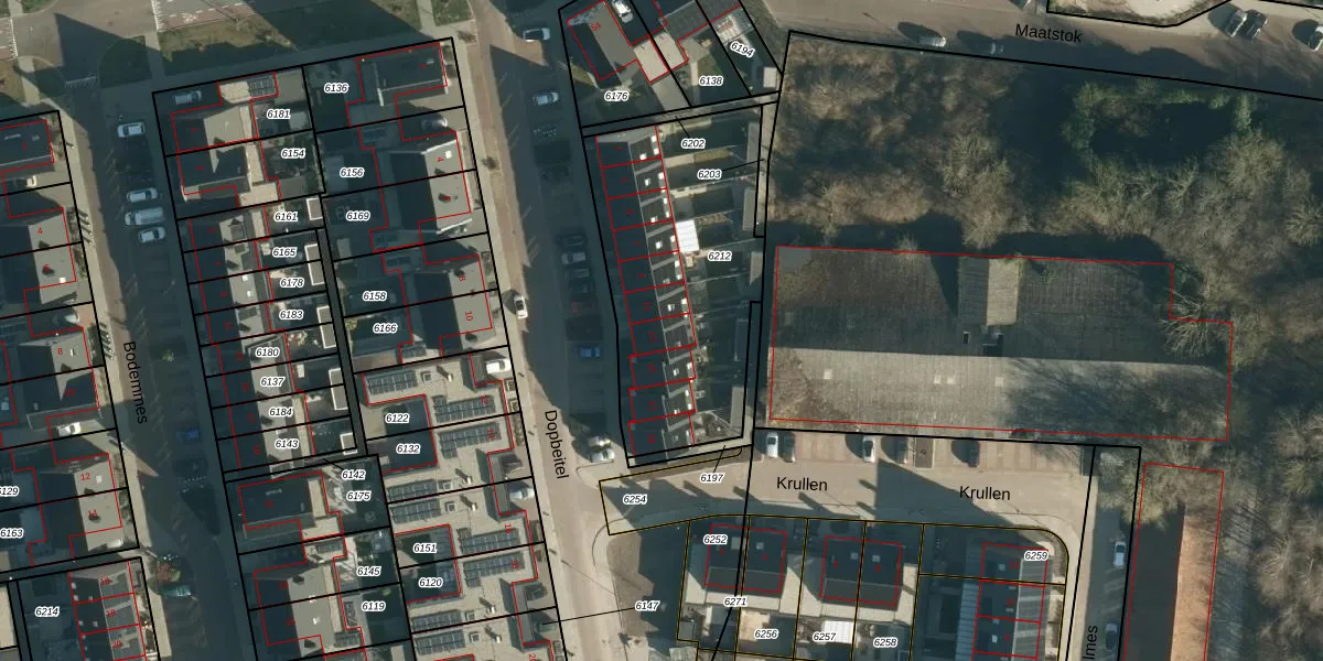 Het perceel waarop Dopbeitel 13 staat heeft een oppervlakte van 1100 m². Dit is een zeer groot perceel. De perceeloppervlakte wordt geregistreerd door het Kadaster. Gedetailleerde informatie over de maten van dit perceel kunt u vinden in het rapport Kadastrale kaart met maatvoering van Dopbeitel 13.