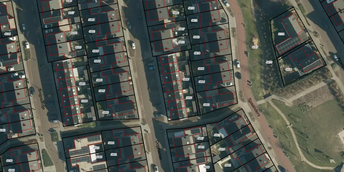 Het perceel waarop Dophamer 22 staat heeft een oppervlakte van 682 m². Dit is een groot perceel. De perceeloppervlakte wordt geregistreerd door het Kadaster. Gedetailleerde informatie over de maten van dit perceel kunt u vinden in het rapport Kadastrale kaart met maatvoering van Dophamer 22.