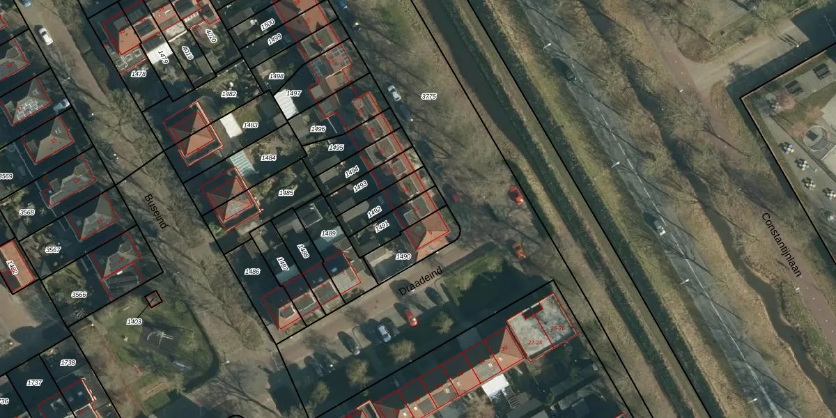 Gebruik de zoekbalk of klik op een perceel voor informatie over de adressen binnen dit perceel.