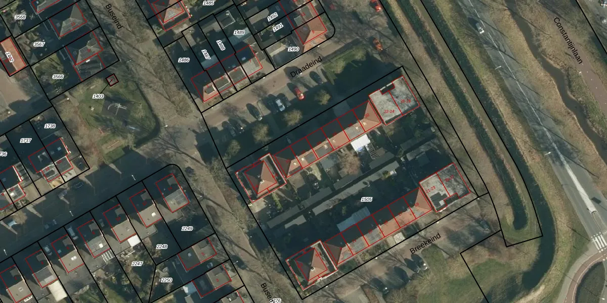 Het perceel waarop Draadeind 12 staat heeft een oppervlakte van 3365 m². Dit is een zeer groot perceel. De perceeloppervlakte wordt geregistreerd door het Kadaster. Gedetailleerde informatie over de maten van dit perceel kunt u vinden in het rapport Kadastrale kaart met maatvoering van Draadeind 12.