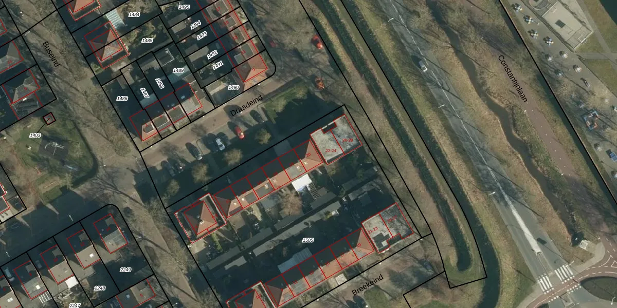 Het perceel waarop Draadeind 20 staat heeft een oppervlakte van 3365 m². Dit is een zeer groot perceel. De perceeloppervlakte wordt geregistreerd door het Kadaster. Gedetailleerde informatie over de maten van dit perceel kunt u vinden in het rapport Kadastrale kaart met maatvoering van Draadeind 20.