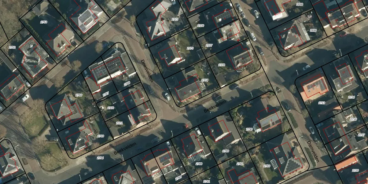 Driesvelden 2 is gelegen op kadastraal perceel BES00K2774. Deze kadastrale aanduiding is uniek en wordt gebruikt door het Kadaster om eigendomsrechten en andere zakelijke rechten vast te leggen. Het perceel maakt onderdeel uit van de kadastrale gemeente Best.