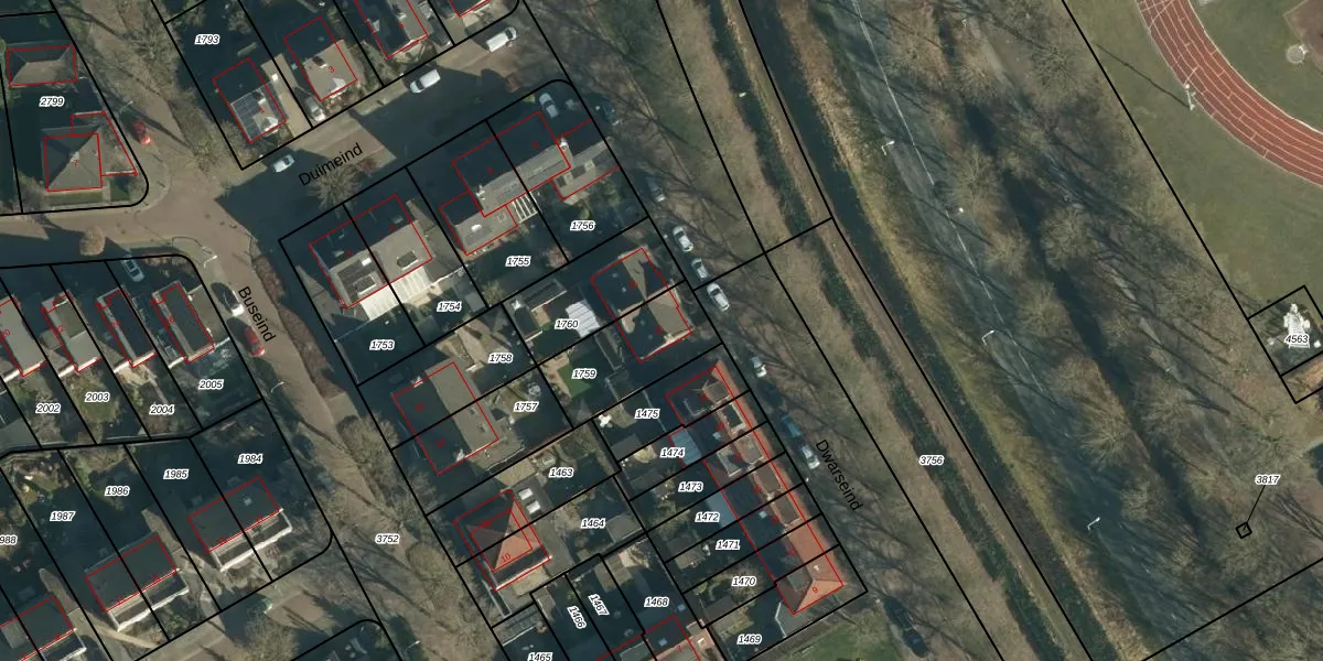 Gebruik de zoekbalk of klik op een perceel voor informatie over de adressen binnen dit perceel.