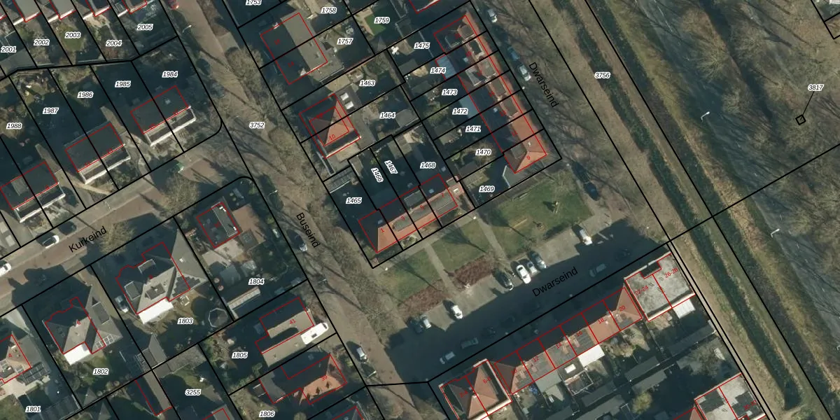 Dwarseind 5 is gelegen op kadastraal perceel BES00K1467. Deze kadastrale aanduiding is uniek en wordt gebruikt door het Kadaster om eigendomsrechten en andere zakelijke rechten vast te leggen. Het perceel maakt onderdeel uit van de kadastrale gemeente Best.