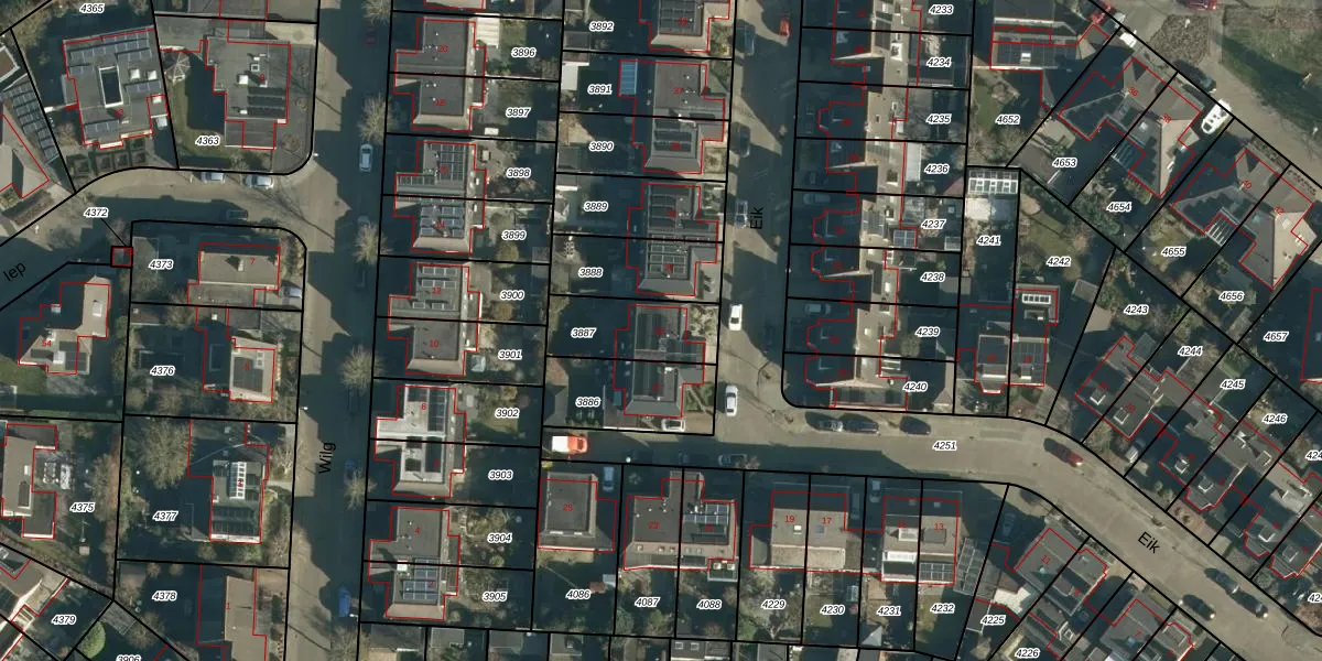 Gebruik de zoekbalk of klik op een perceel voor informatie over de adressen binnen dit perceel.
