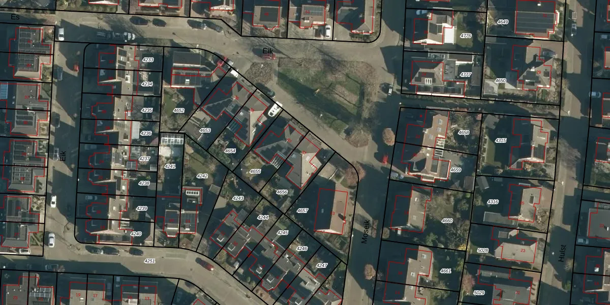 Eik 42 is gelegen op kadastraal perceel BES00H4656. Deze kadastrale aanduiding is uniek en wordt gebruikt door het Kadaster om eigendomsrechten en andere zakelijke rechten vast te leggen. Het perceel maakt onderdeel uit van de kadastrale gemeente Best.