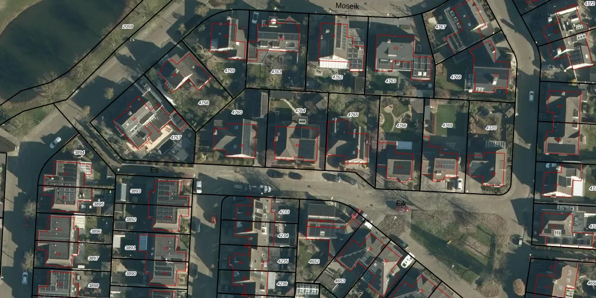 Het perceel waarop Eik 45 staat heeft een oppervlakte van 523 m². Dit is een groot perceel. De perceeloppervlakte wordt geregistreerd door het Kadaster. Gedetailleerde informatie over de maten van dit perceel kunt u vinden in het rapport Kadastrale kaart met maatvoering van Eik 45.